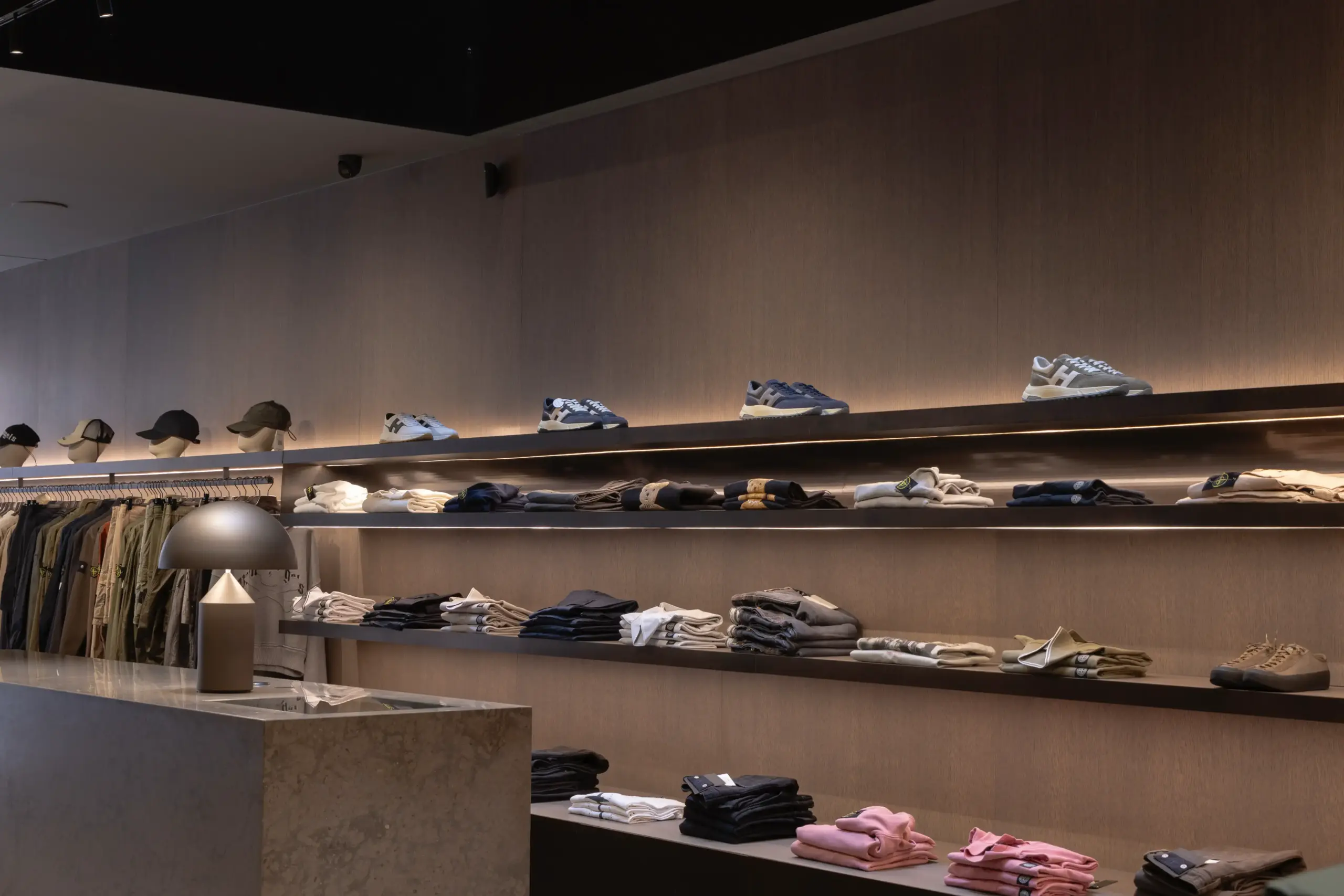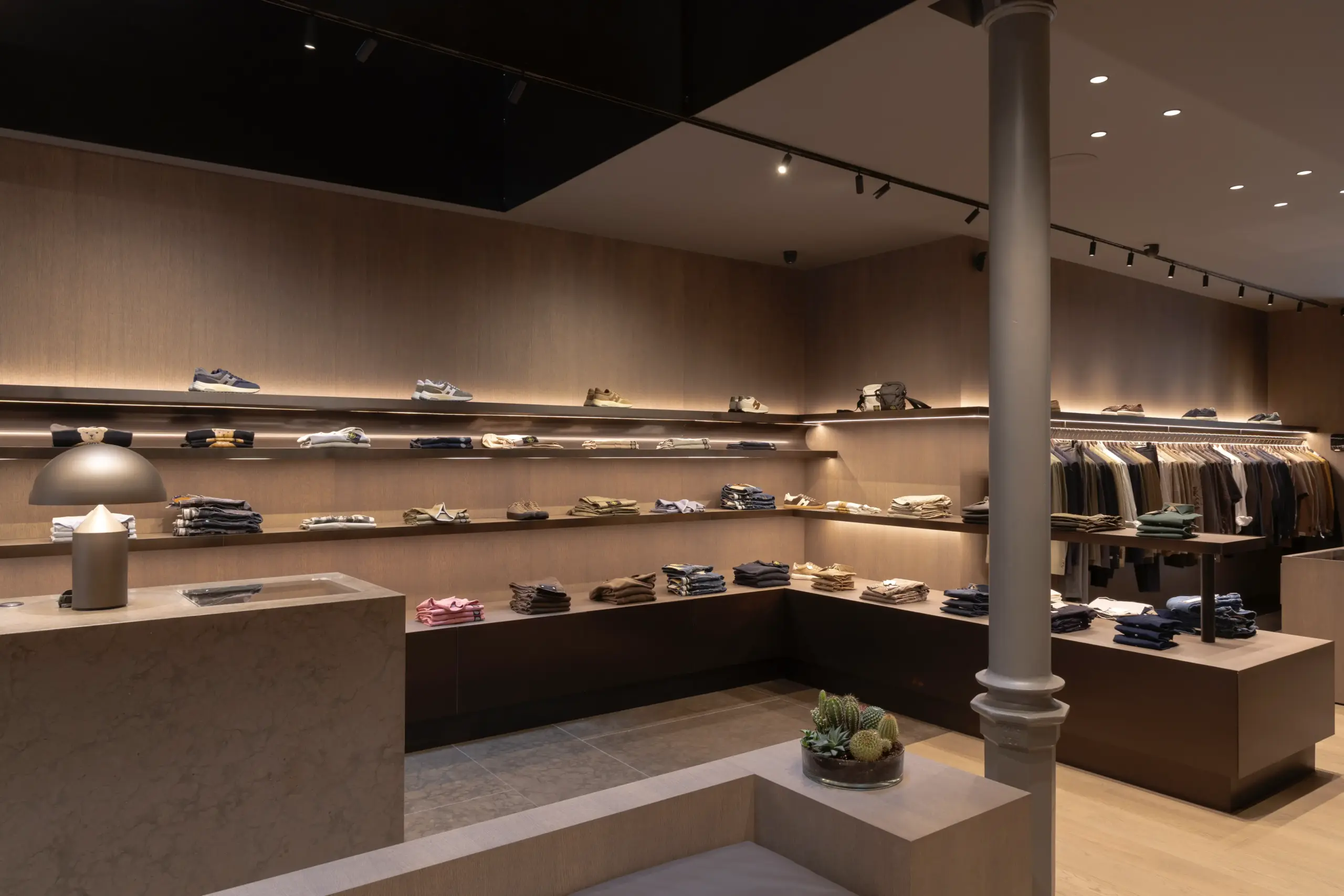 Este espacio refleja una forma de vestir alineada con valores como el confort, la autenticidad y la sobriedad. Las prendas se organizan según tipo de uso y estacionalidad, permitiendo una lectura clara y práctica de la propuesta. Los complementos y accesorios seleccionados (calzado, cinturones, pañuelos, etc.) completan la oferta de manera coherente.